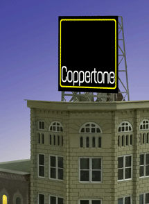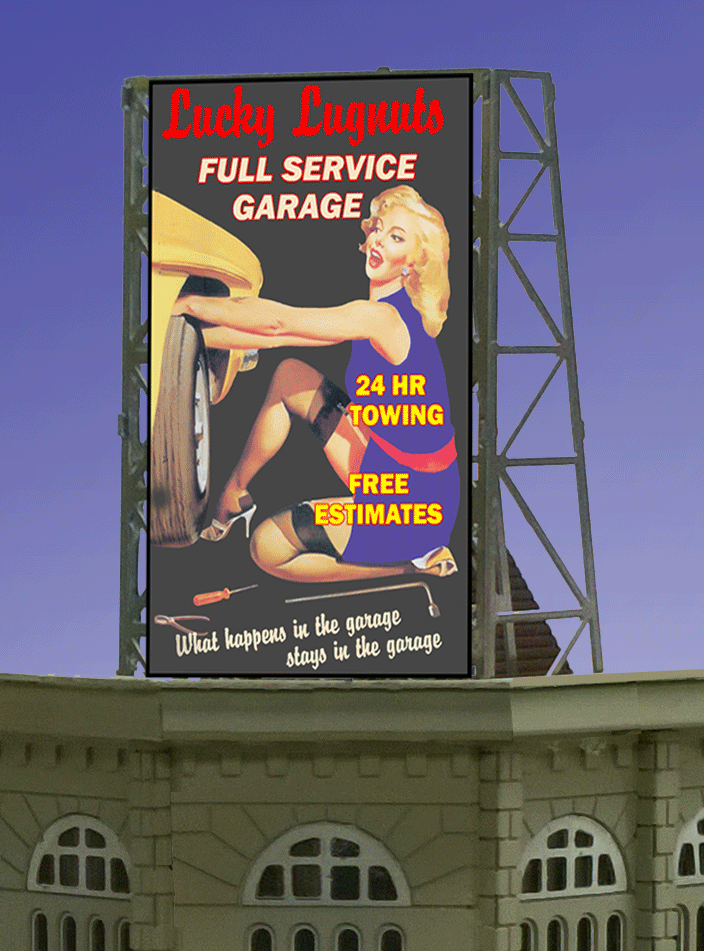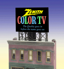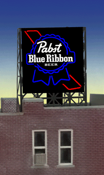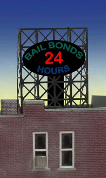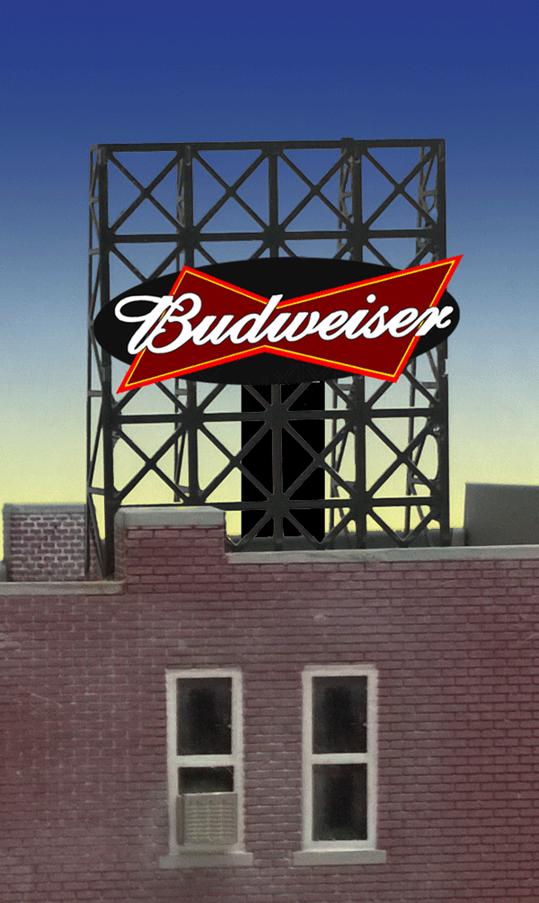 | We have taken our HO/O scale window signs and designed a set of stainless steel photo etched support. Once mounted on your building you will have very realistic sign that will showcase your building. All signs come ready to run. |